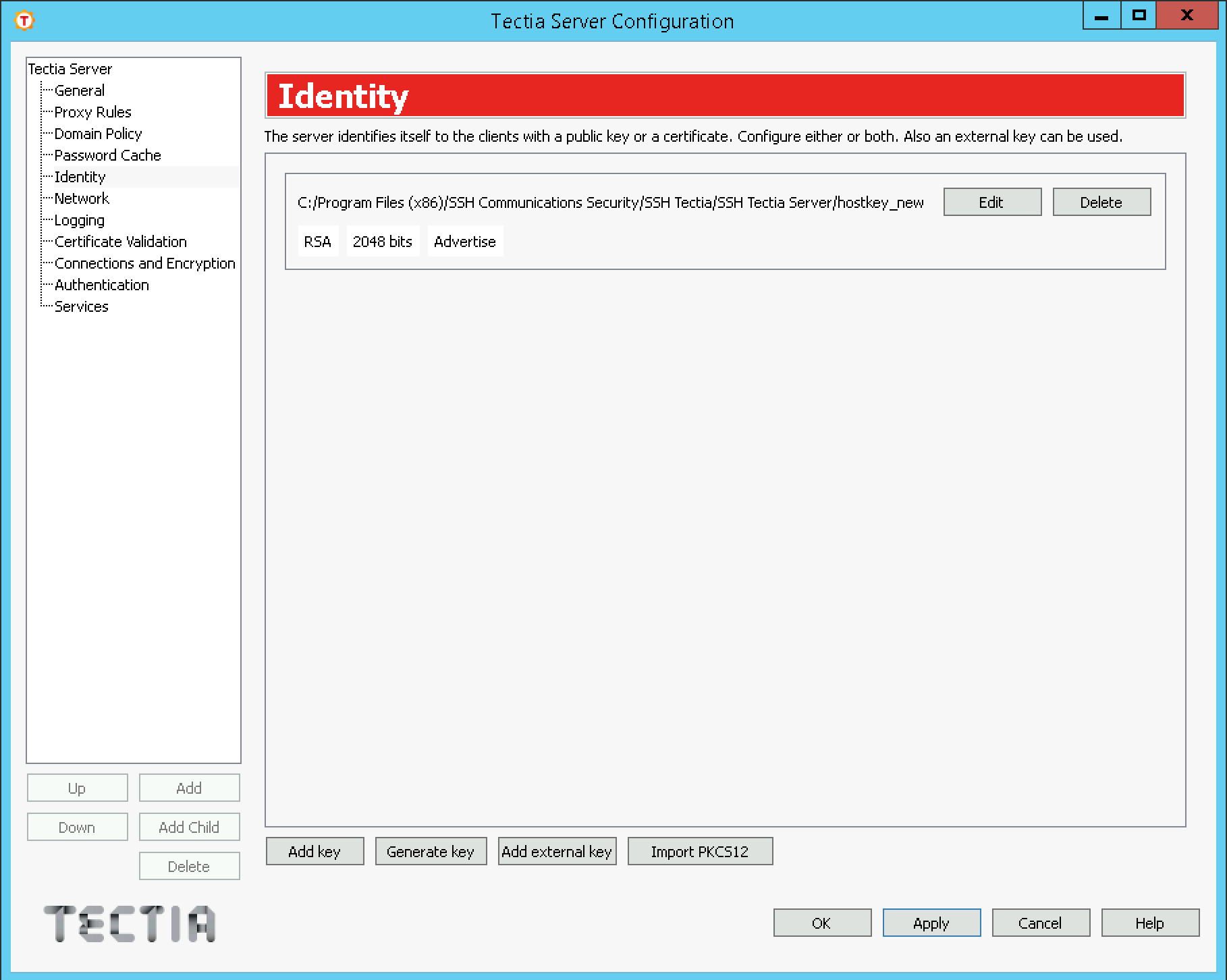 In Tectia Server Configuration GUI → Identity → Edit hostkey and hostkey_new